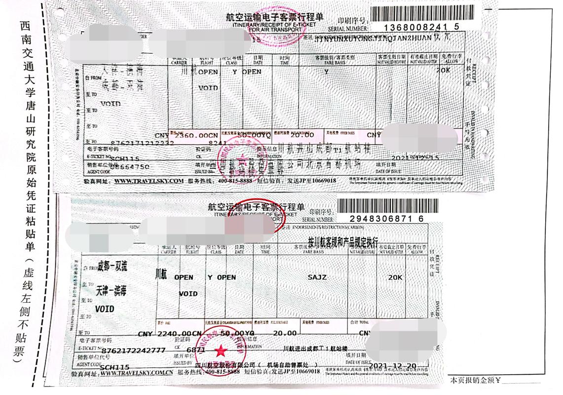 二、差旅费票据(如火车票、机票行程单等)应按照出差人员的姓名及出差行程(或时间)顺序粘贴。