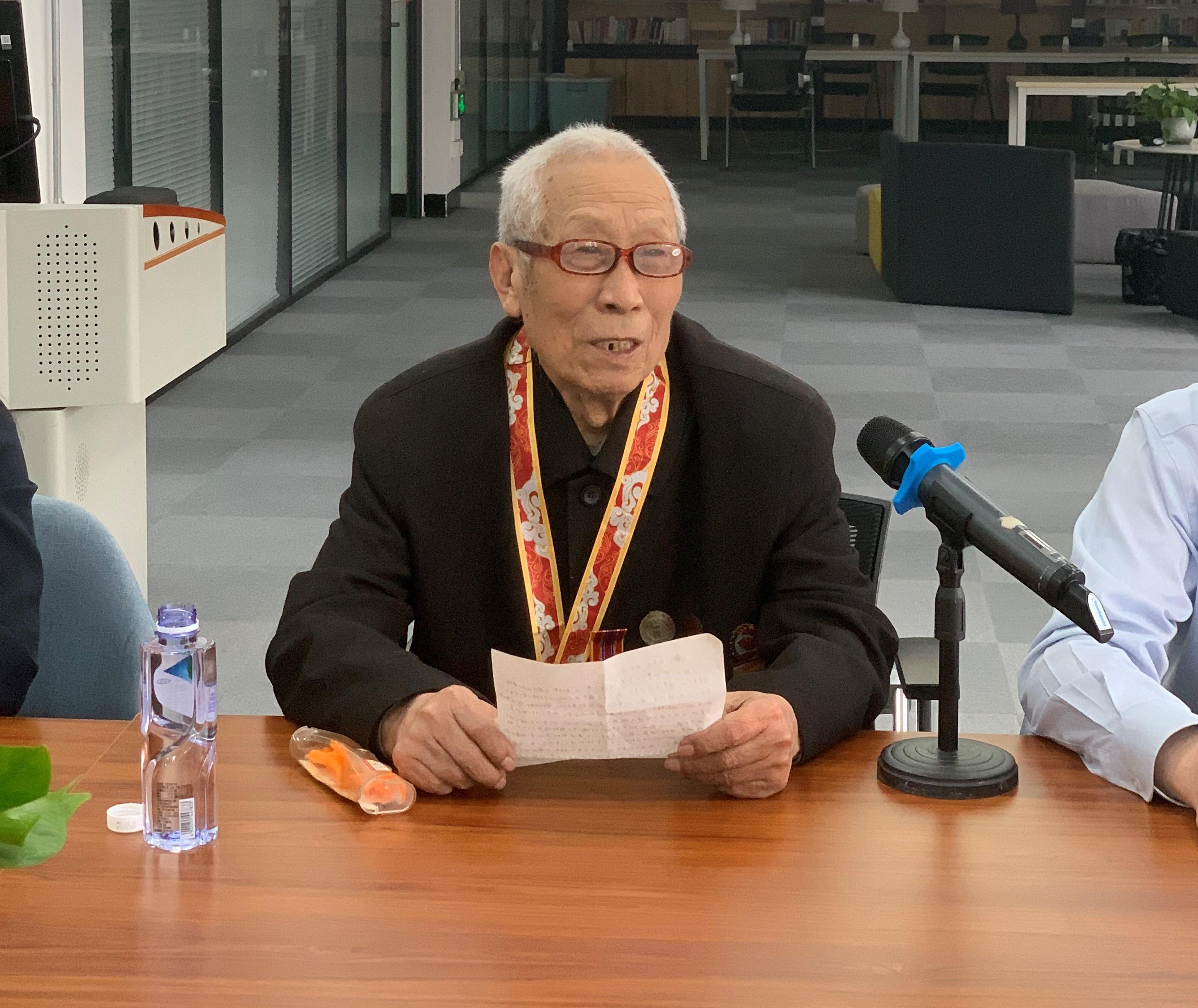 5月13日这一天,张老也迎来了90岁寿辰。作为一名为党奋斗一生的共产党员,张老期盼这一时刻已经很久。“感谢党的关怀,我十分荣幸加入中国共产党,所以趁着今天自己生日,在7月1日党的生日前,向党组织上交1171元有的特殊含义的党费,为党庆生!”1000元为大额党费,100元代表党的100岁生日,71元代表张老的71年党龄,简单的几个数字,流露出的是一名老党员的坚守与信仰。随后,张老与参加活动的同学们进行了深入交流,向在场学子讲述了自己的经历和感悟。张老谈到,自己14岁参加革命,18岁加入共产党,无论是战争时期当士兵、军官,还是退伍后参加交大建设工作,都把岗位看作为党做贡献的舞台、为人民服务的阵地。每每谈起自己在党的领导下奋斗过的岁月,张老的脸上都会洋溢起自豪与幸福的笑容,他勉励学子,一定要听党话,跟党走,把科学文化知识学好,将来报效祖国。学子们认真聆听着这堂生动的党课,更被张老爱党爱国的精神深深打动。