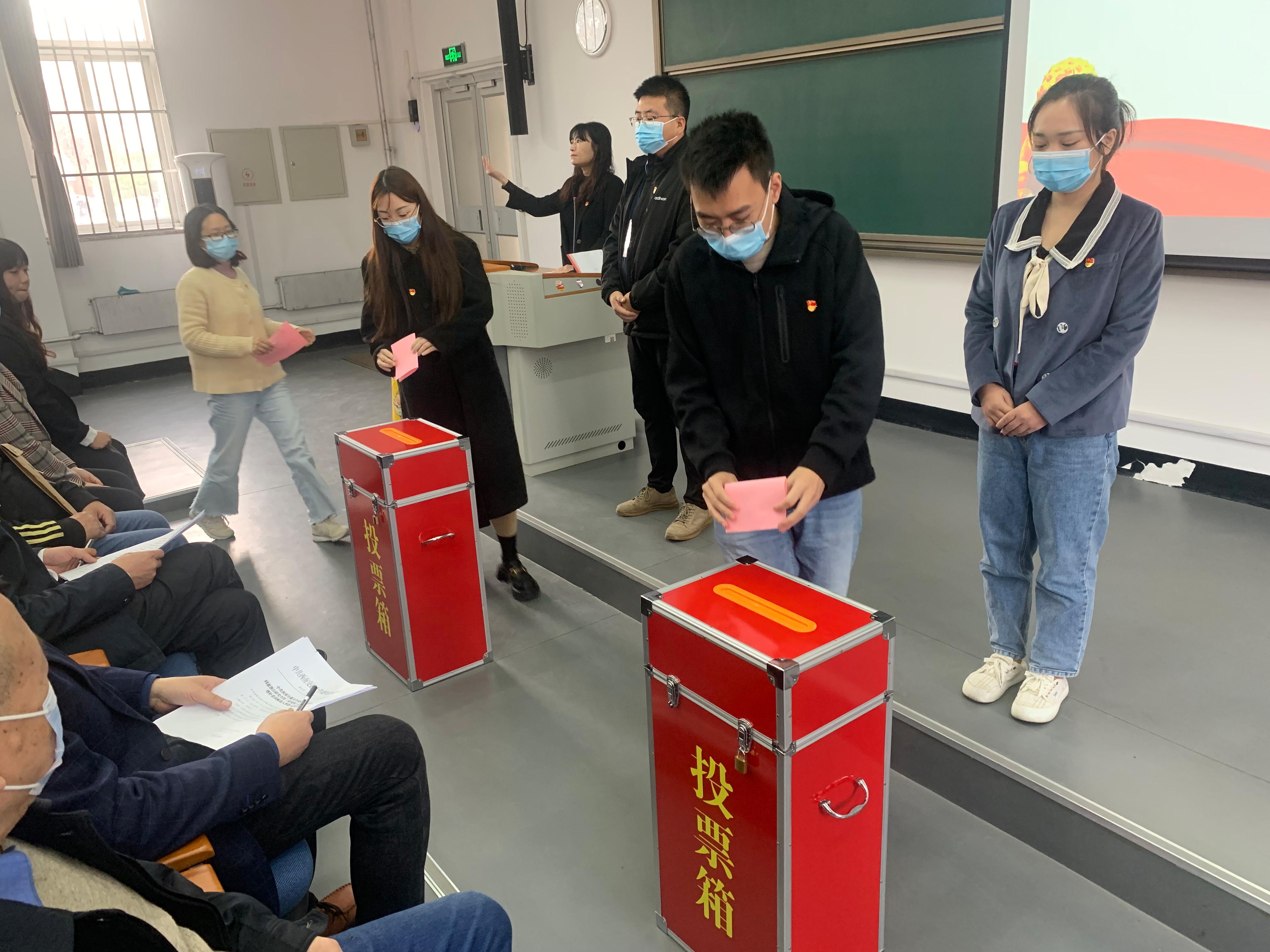 会议在雄壮的国歌声中拉开帷幕。全体党员严格按照《中国共产党章程》、《中国共产党基层组织选举工作条例》及上级党组织有关规定,采取无记名投票方式和差额选举的办法,增补选举出王韬、吴刚、贾诚为唐山研究生院(研究院)党总支委员会委员。