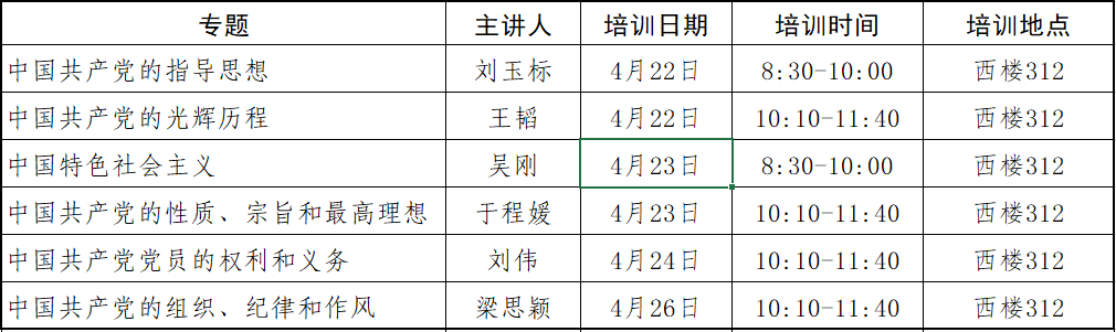 考核方式:在完成自主学习后,每位入党积极分子须提交一份不少于1500字的手写培训总结报班主任评阅(4月29日前)。自主学习不限时间,学习内容纳入结业考试内容。