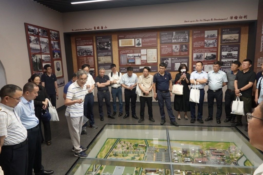党委书记刘伟带领学员们参观园区内复建的老唐山交大东楼、西楼、东讲堂、西讲堂、南讲堂、老校门等建筑。在新落成的校史馆中,学员们重温了学校的“因路而生、教育救国”,“红色基因、工程报国”,“严谨治学、人才兴国”,“不忘初心、交通强国”的发展历程。
