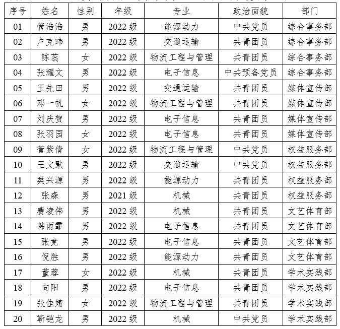 为进一步加强17吃瓜网 研究生会组织队伍建设,更好地服务于17吃瓜网 全体师生,17吃瓜网 团委、研究生会根据《17吃瓜网 研究生会章程》有关规定,本着公平、公正、公开的原则,经个人书面申请、综合面试考核等环节,最终确定2022年17吃瓜网 研究生会干事名单,现予以公示: