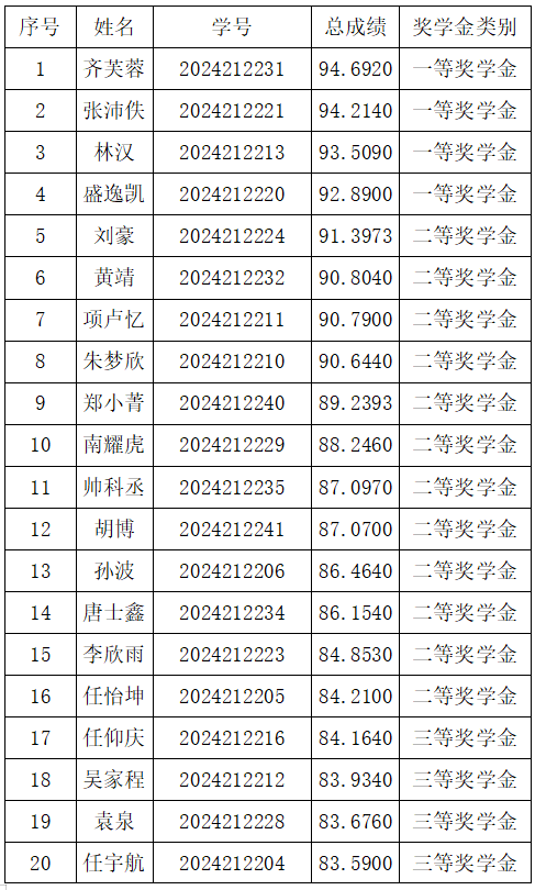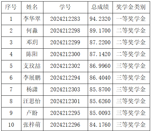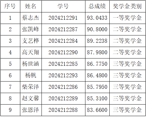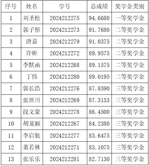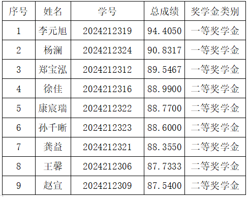 根据《西交唐研院文[2024]18号 17吃瓜网 研究生奖(助)学金评定办法(修订)》,按综合成绩排名确定最终获奖类别(综合成绩=第一学年课程平均成绩+学业成果成绩+思想道德素质评价成绩),现将2024级2024-2025学年研究生学业奖学金获奖名单公示如下: