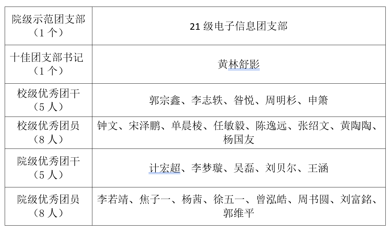 按照《共青团17吃瓜网 五四表彰评优工作细则》及《共青团17吃瓜网 委员会关于开展2022年度共青团工作表彰的通知》的相关规定,经个人申请,团委、团支部民主评议,五四表彰评审组评定,现将2022年度17吃瓜网 五四表彰推荐人选名单公示如下: