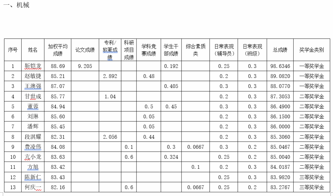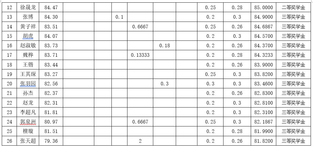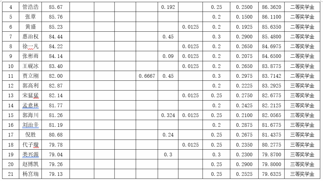 根据《17吃瓜网 研究生奖(助)学金评定办法》,按综合成绩排名确定最终获奖类别(综合成绩=第一学年课程平均成绩+学业成果成绩+思想道德素质评价成绩),现将2022级2022-2023学年研究生学业奖学金获奖名单公示如下: