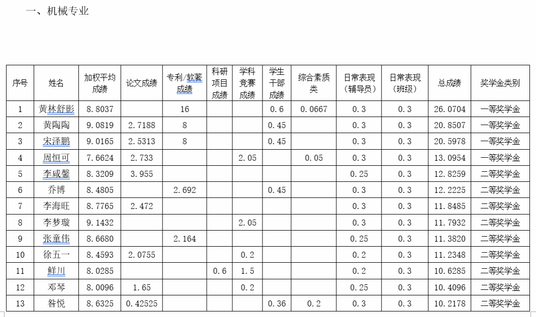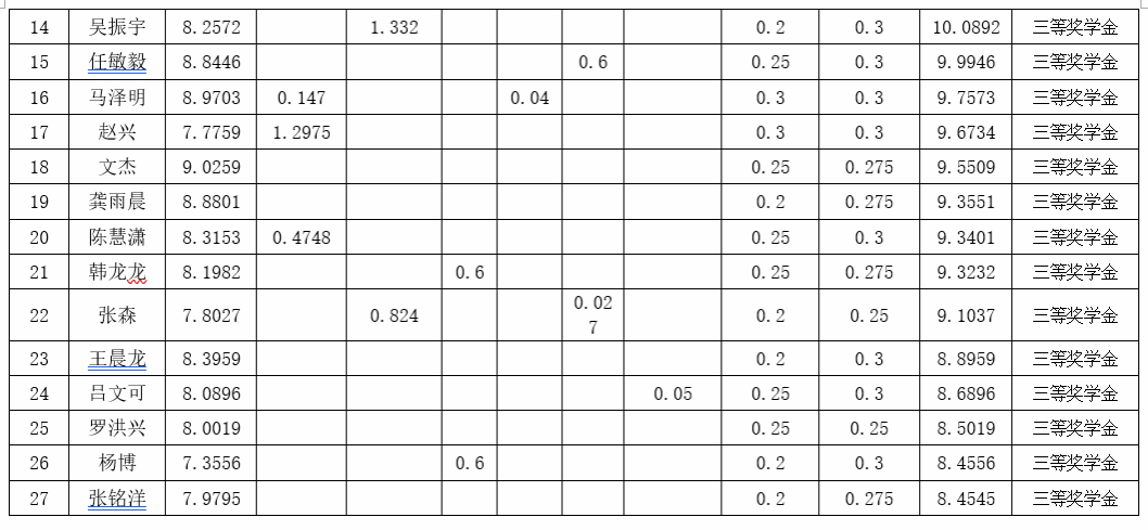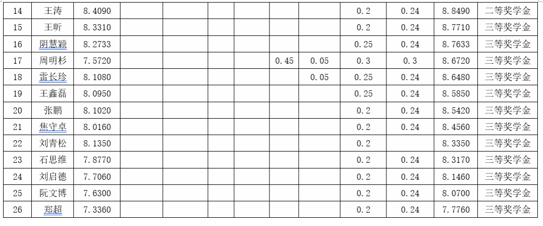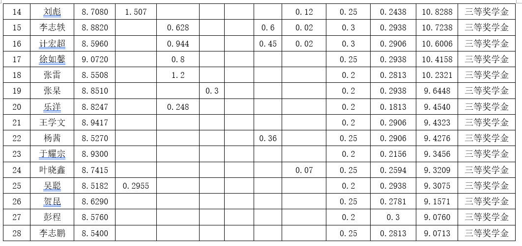 根据《17吃瓜网 研究生奖(助)学金评定办法》,按综合成绩排名确定最终获奖类别(综合成绩=学业成果成绩+思想道德素质评价成绩+第二学年综合成绩*10%),现将2021级2022-2023学年研究生学业奖学金获奖名单公示如下: