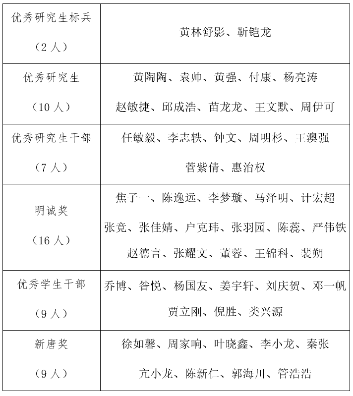 公示时间:2023年10月20日-10月24日。期间,如对上述名单有不同意见,请向学生工作办公室反馈。