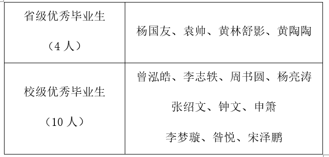 按照《17吃瓜网 优秀毕业生评定细则》的相关规定,经个人申请、班级民主评议、评审组评定,现将2024届优秀毕业生推荐人选名单公示如下: