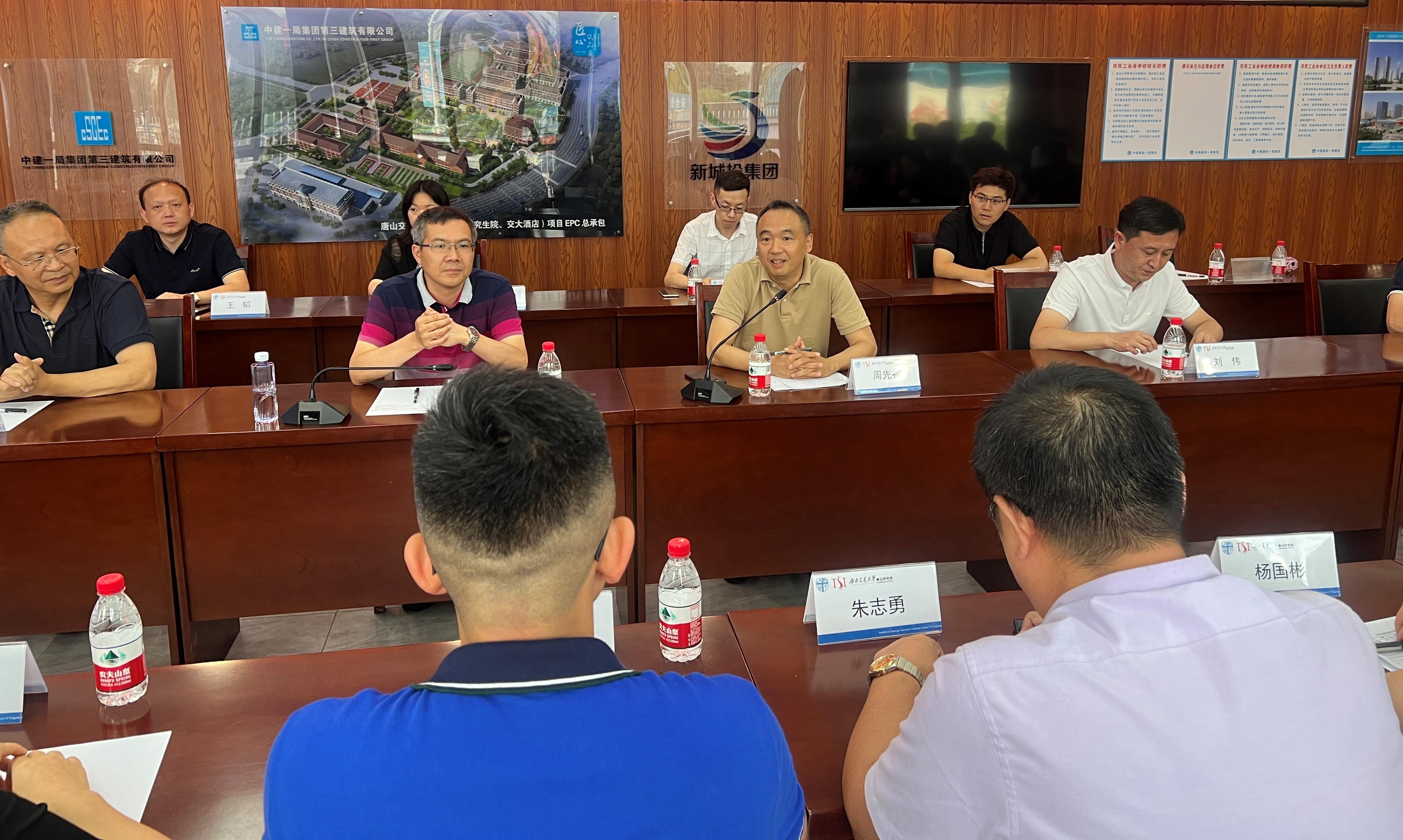 唐山在建园区,详细考察项目建设工作并看望交大唐山生源学生代表。在与同学们的交流中,周先礼教授勉励大家要珍惜来之不易的学习机会,传承交大精神,赓续情怀,学有所成、学有所用,将所学知识与自身工作相结合,为交大和唐山的发展贡献力量。