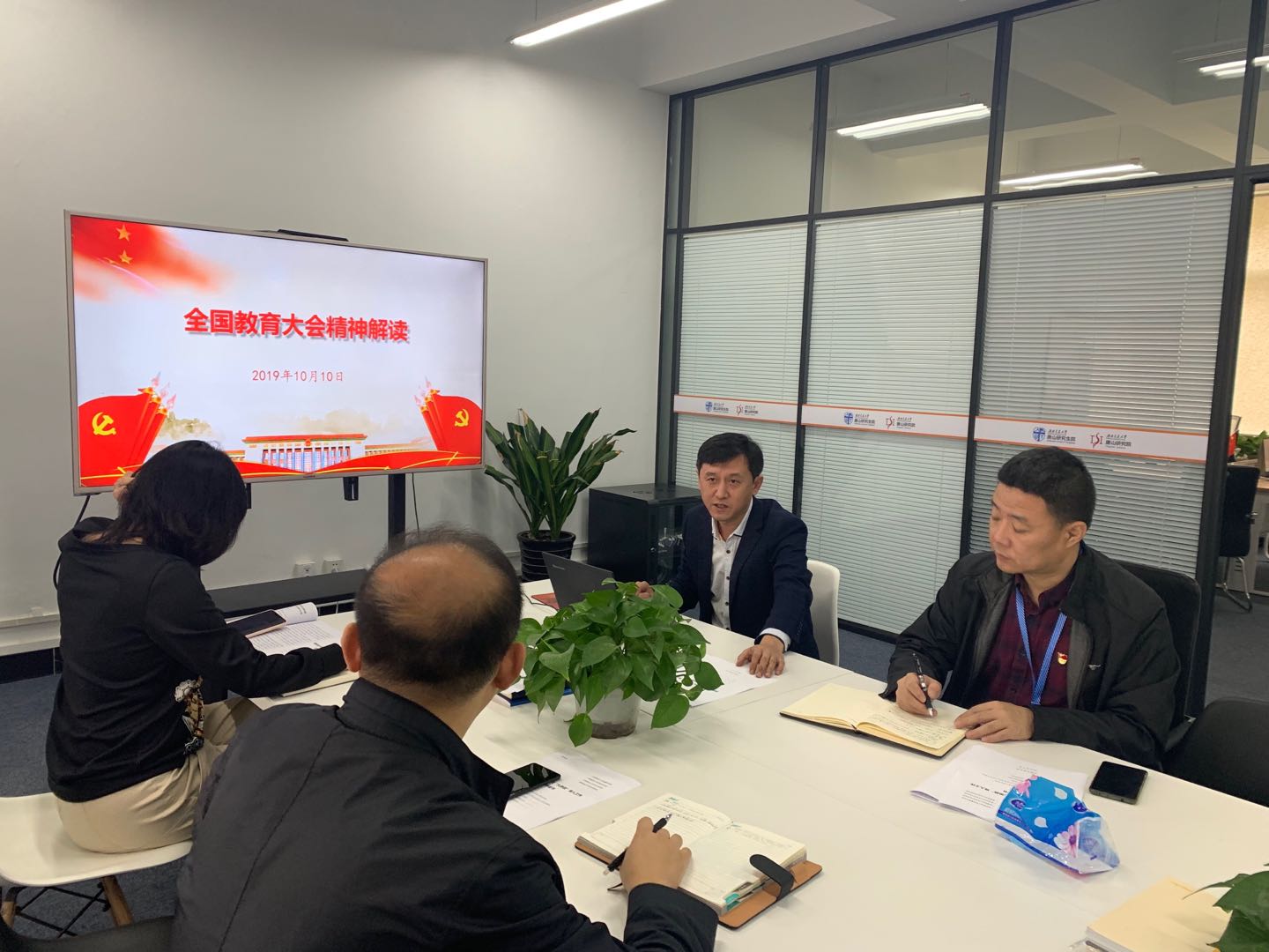 10月16日,领导班子以“不忘初心,牢记使命,建设好三全育人和异地办学研究生思想政治工作体系”为主题进行了主题研讨活动。班子成员结合自身分管工作,结合学习体会,分别就如何进一步做好党建工作、就业工作、师资队伍建设、产学研合作、离退休服务工作做了深入发言和讨论。