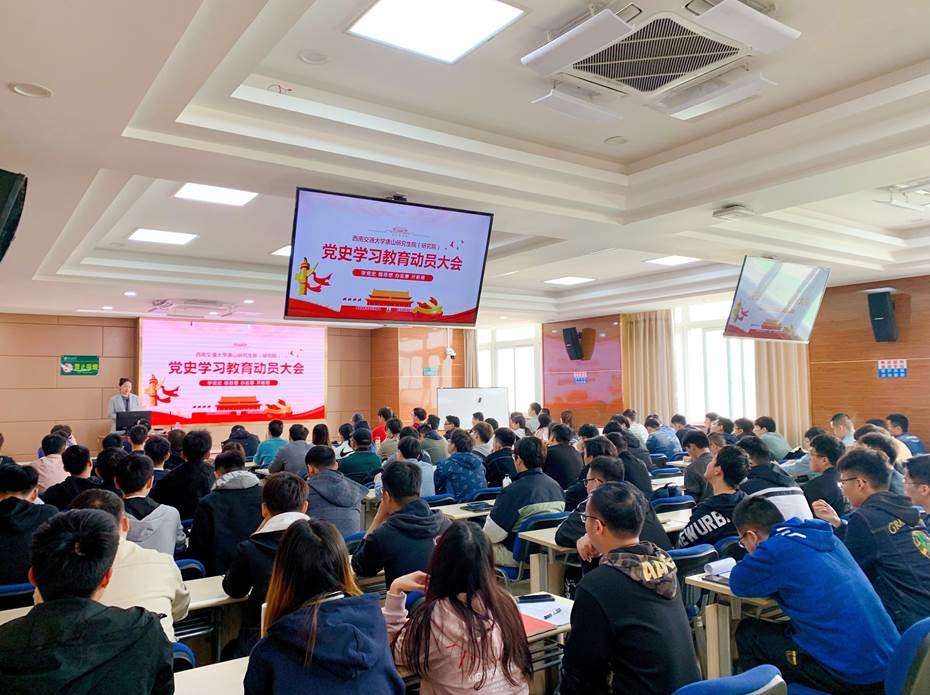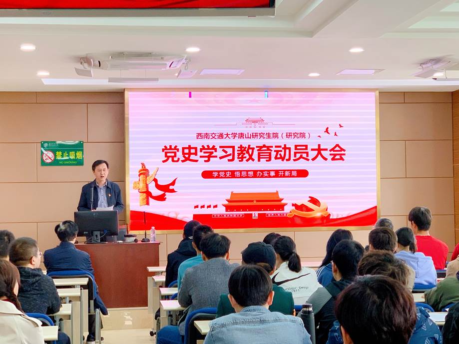 唐山研究生院(研究院)党总支在九里校区六号教学楼召开党史学习教育动员大会暨唐山研究生院(研究院)分党校2021-01期入党积极分子培训开班仪式,唐山研究生院全体党员、发展对象及入党积极分子参加会议。